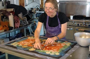 At left: Potholders made in one of Karin’s classes - we spent much of a day just working on making stellar squares of the proper thickness, straight edges and corners.